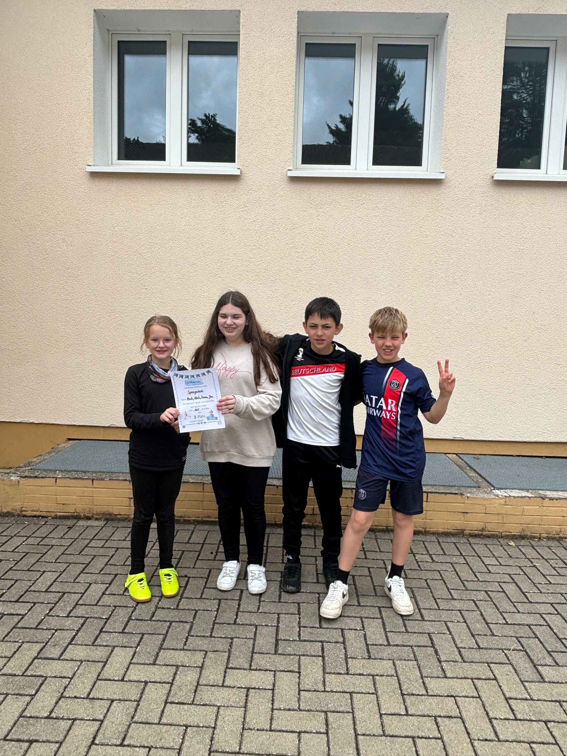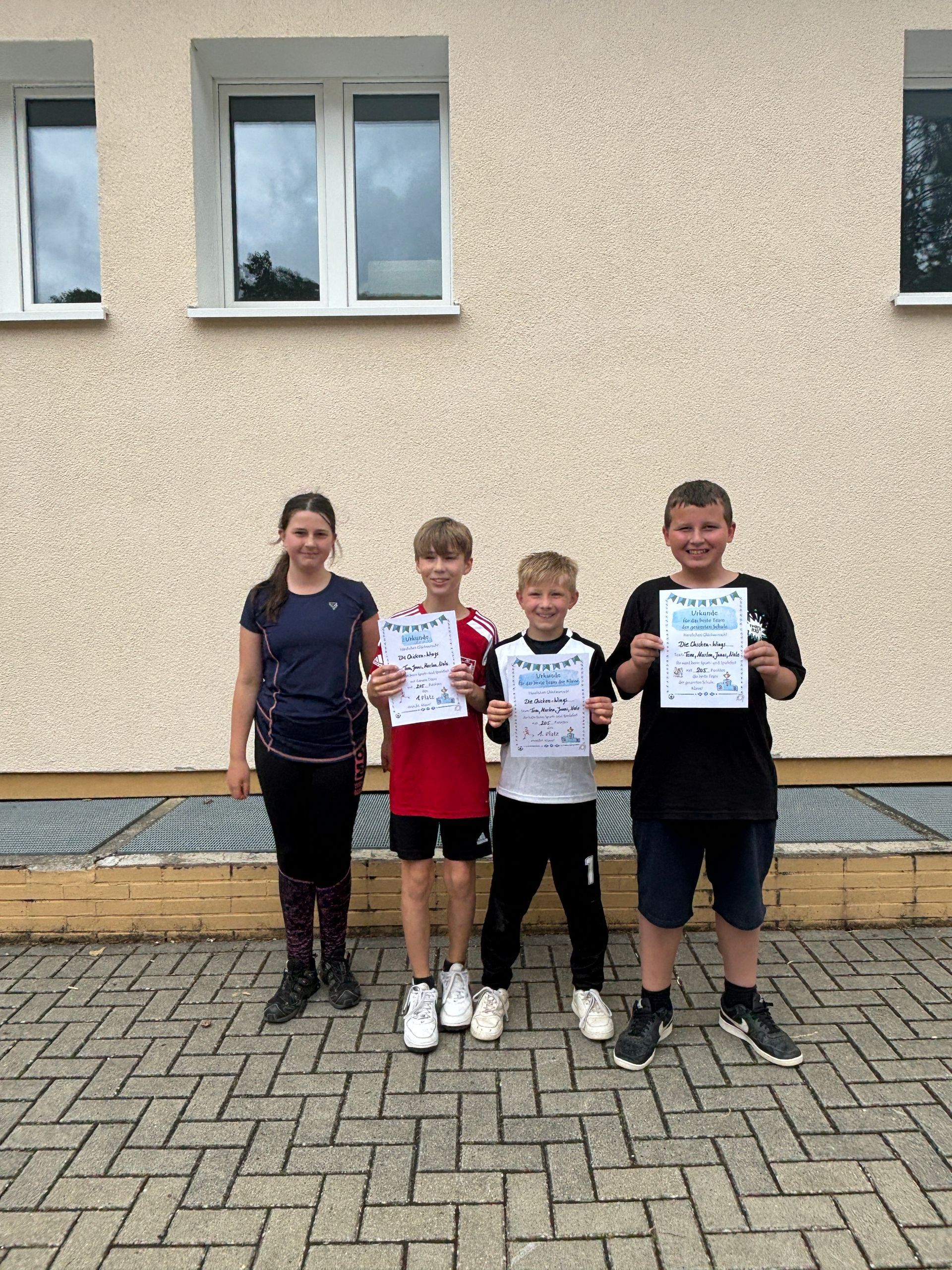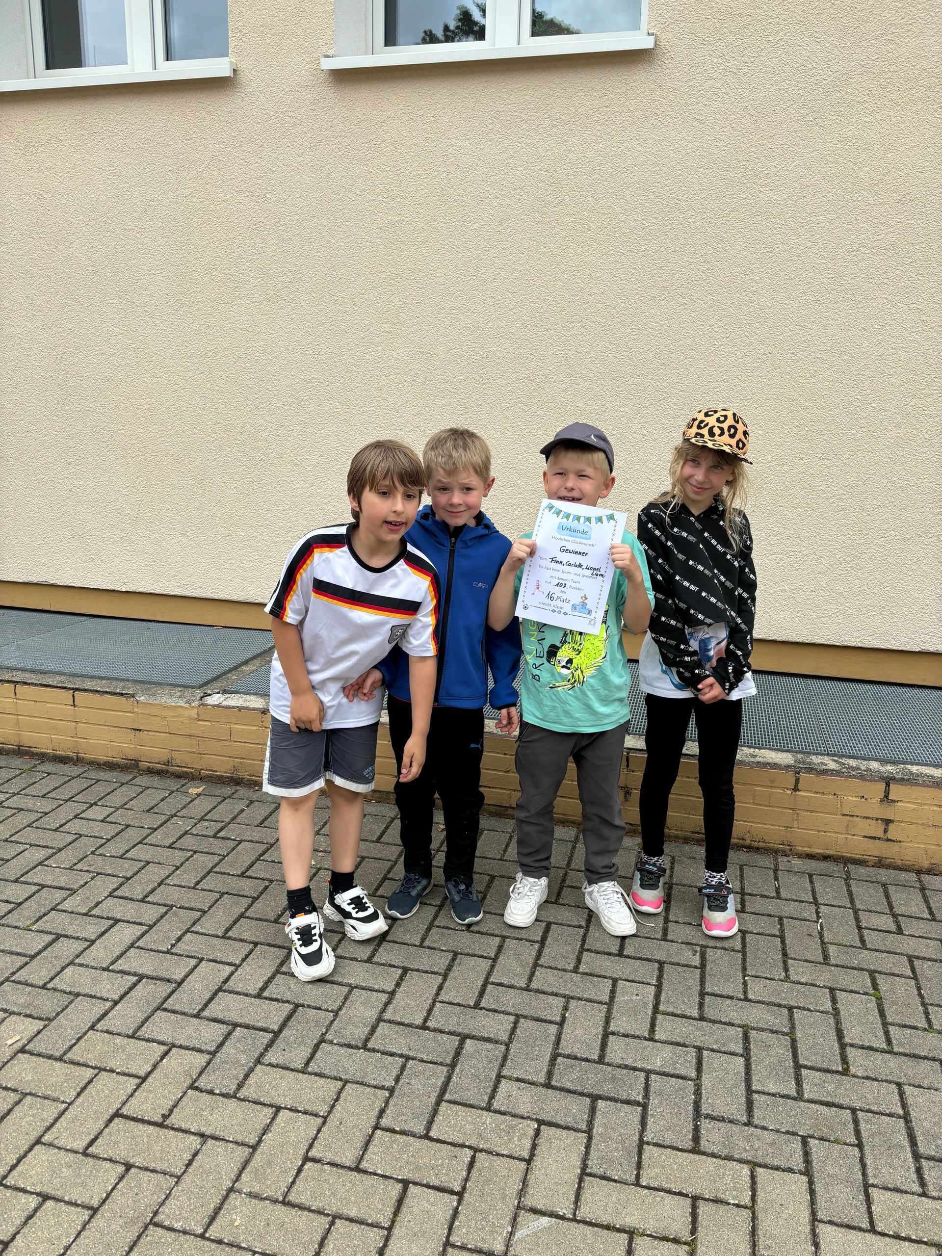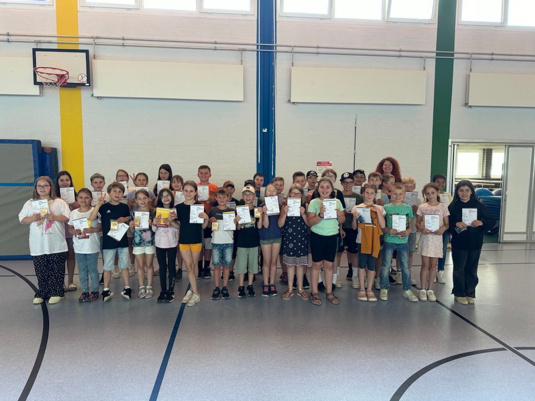 25. Juni 2024 wurden die Urkunden in einem feierlichen Rahmen in der Turnhalle verliehen. Zur Urkunde gab es für jedes Kind ein kleines Knobelspiel und ein Lösungsheft mit neuen Logikrätseln, Knobeleien und Basteleien für die Klassenstufen 3 bis 8.