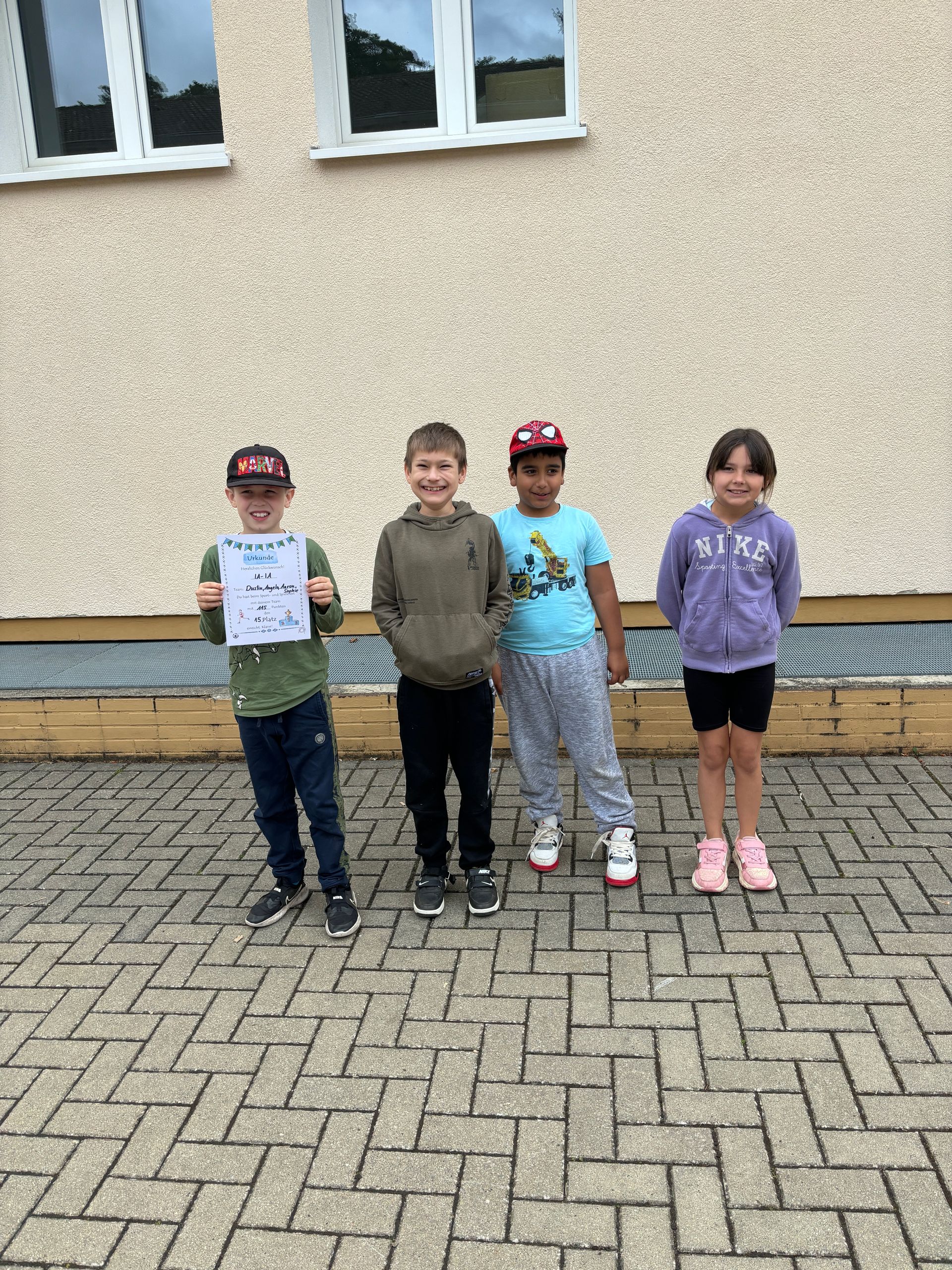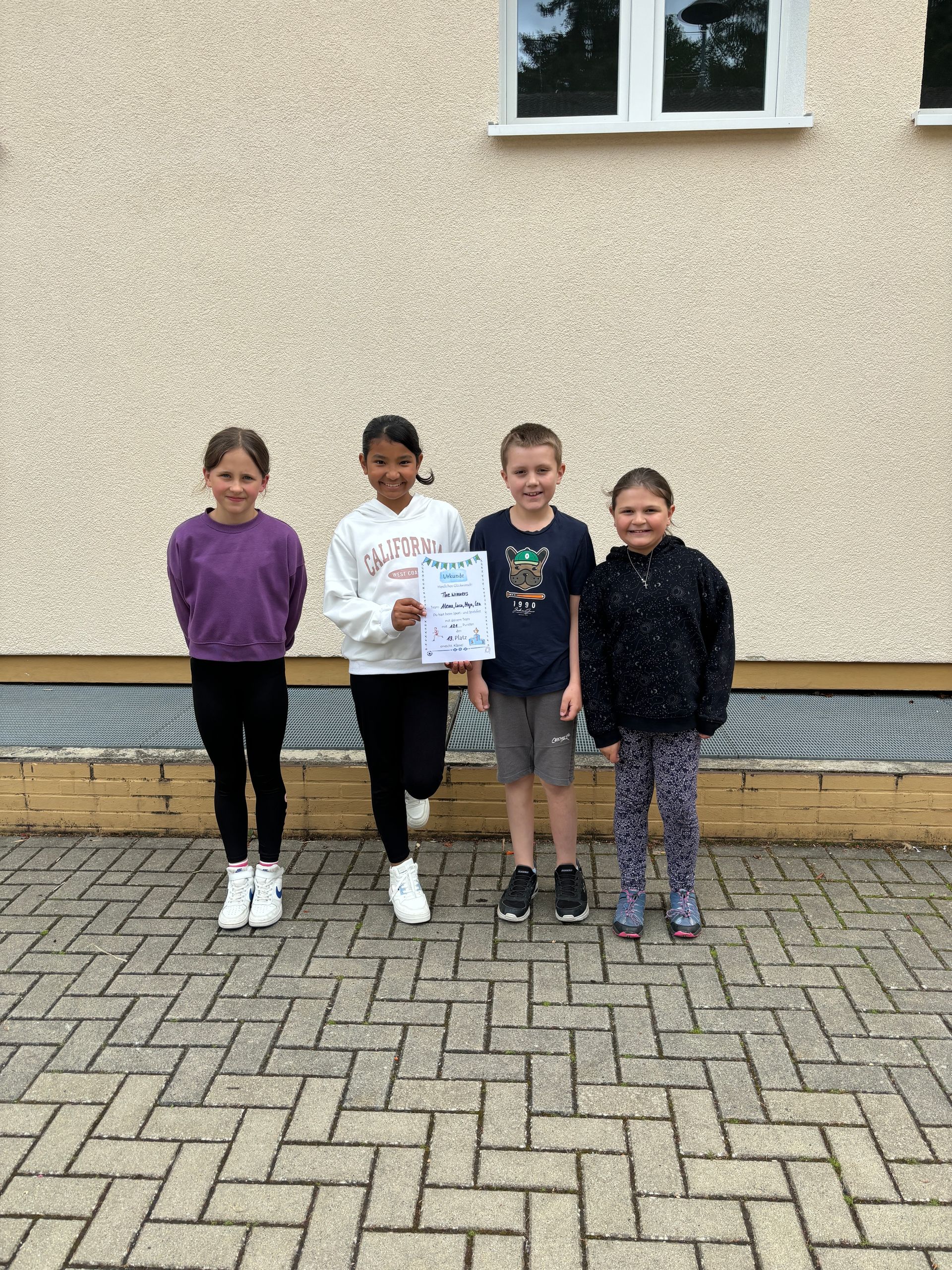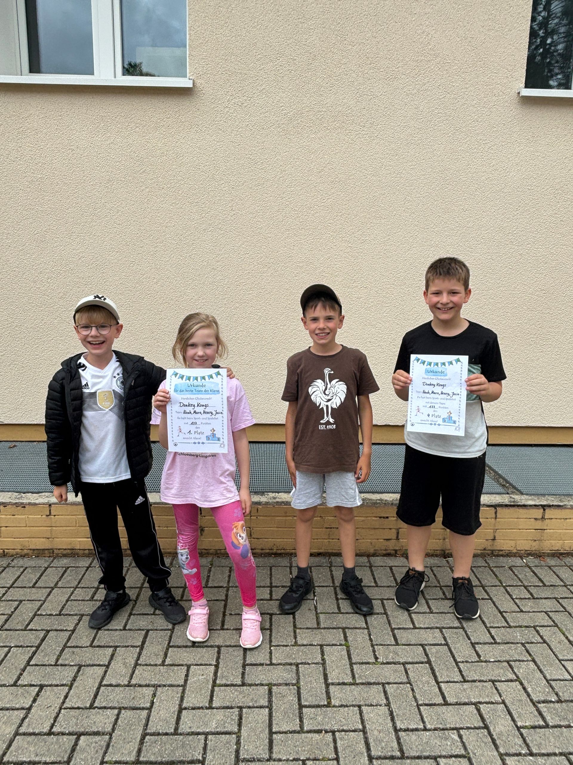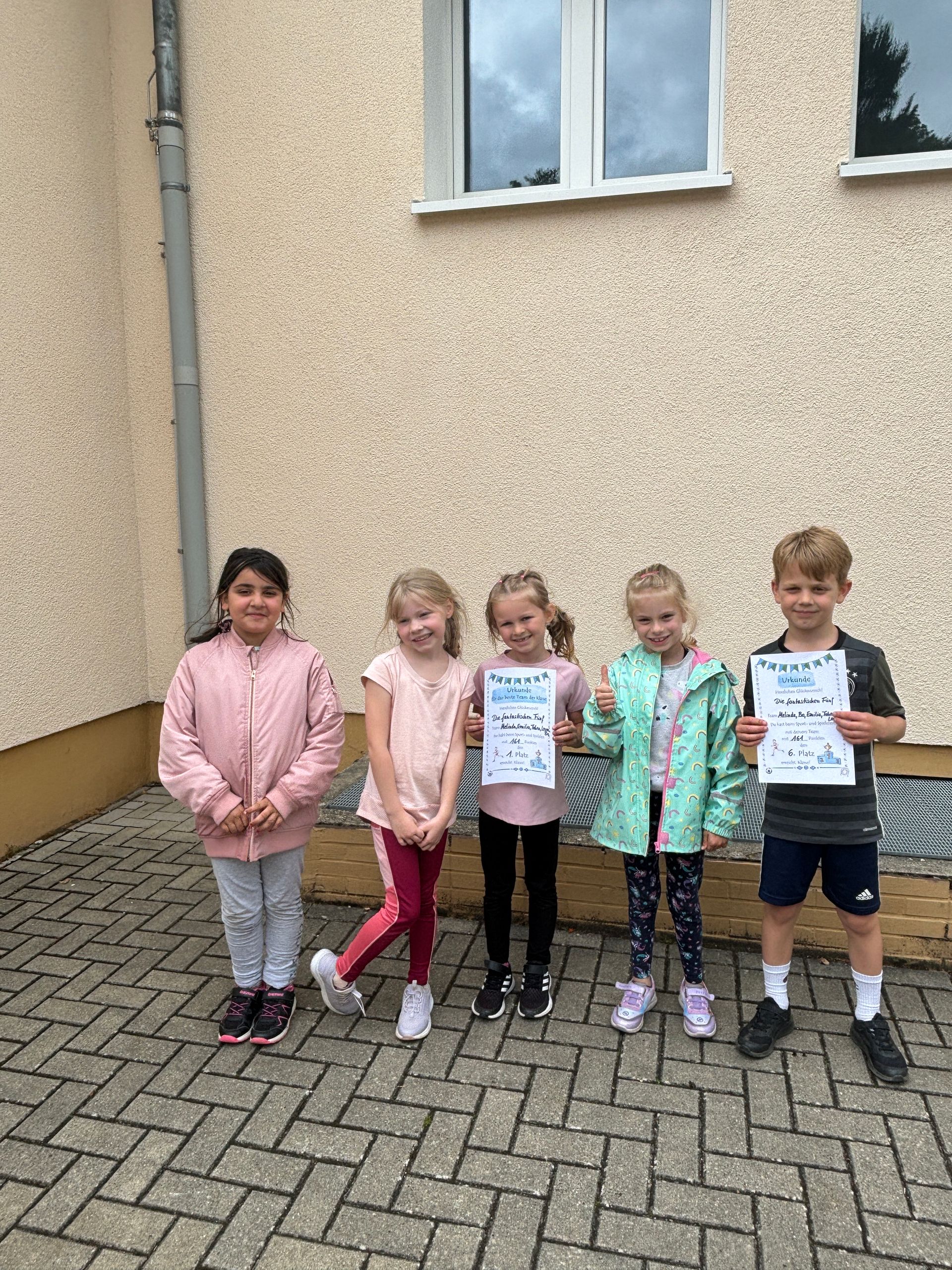 25. Juni 2024 wurden die Urkunden in einem feierlichen Rahmen in der Turnhalle verliehen. Zur Urkunde gab es für jedes Kind ein kleines Knobelspiel und ein Lösungsheft mit neuen Logikrätseln, Knobeleien und Basteleien für die Klassenstufen 3 bis 8.